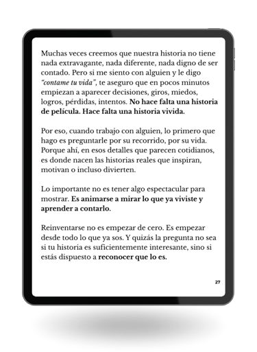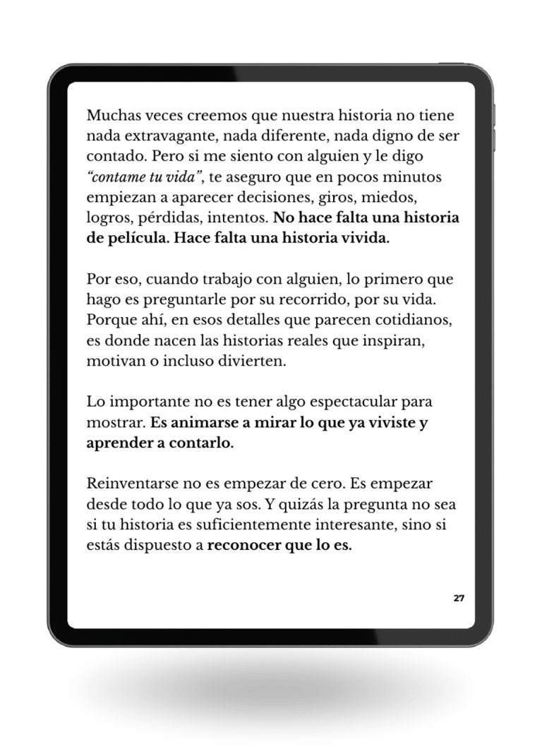 A través de experiencias personales, historias reales y reflexiones prácticas, este libro invita a animarte a ocupar tu lugar, incluso cuando no te sentís completamente listo.